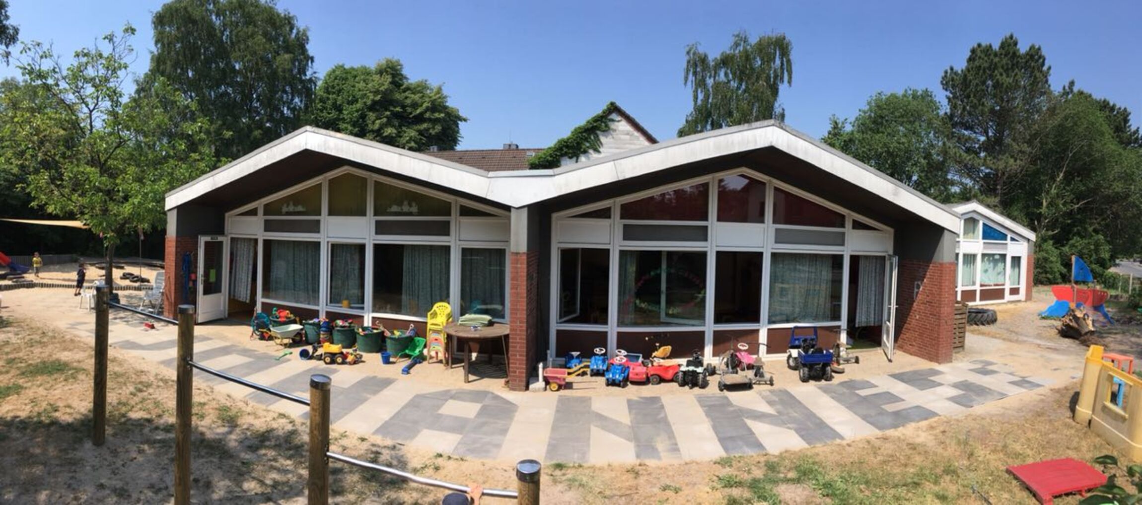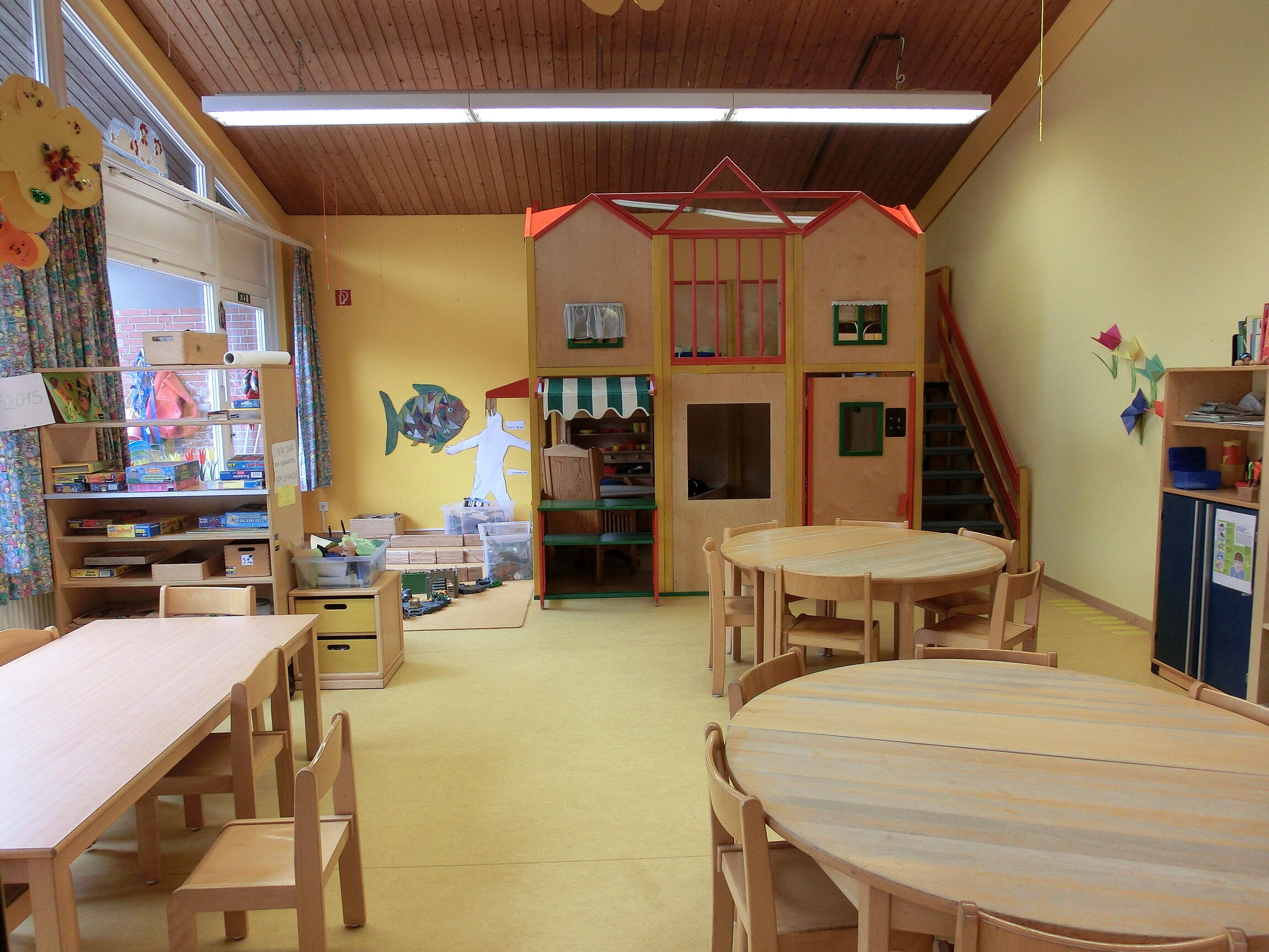 Die engagierten Erzieher/-innen betreuen 48 Kinder zwischen 8 Wochen und 6 Jahren. Neben zwei Gruppenräumen für Kinder im Vorschulalter und einer Krippengruppe, wird auch die Eingangshalle als Versammlungsort genutzt. Hier finden regelmäßig mit allen Kindern Morgenkreise, Geburtstagsfeiern und kleine Aufführungen statt.